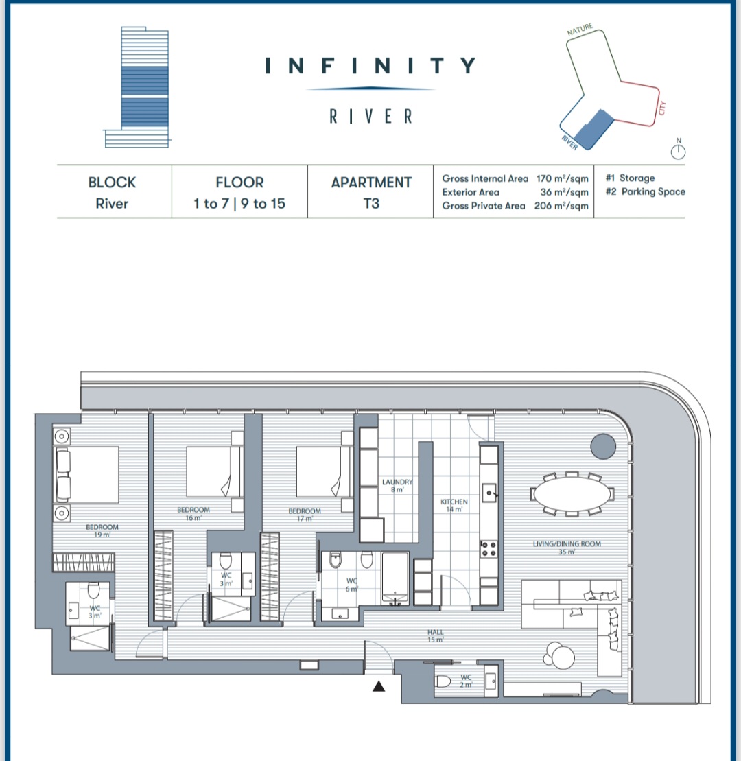 Áreas generosas com 206 m2 de área bruta e 170m2 de área útil, 3 suites, varanda com 36 m2, cozinha totalmente equipada.