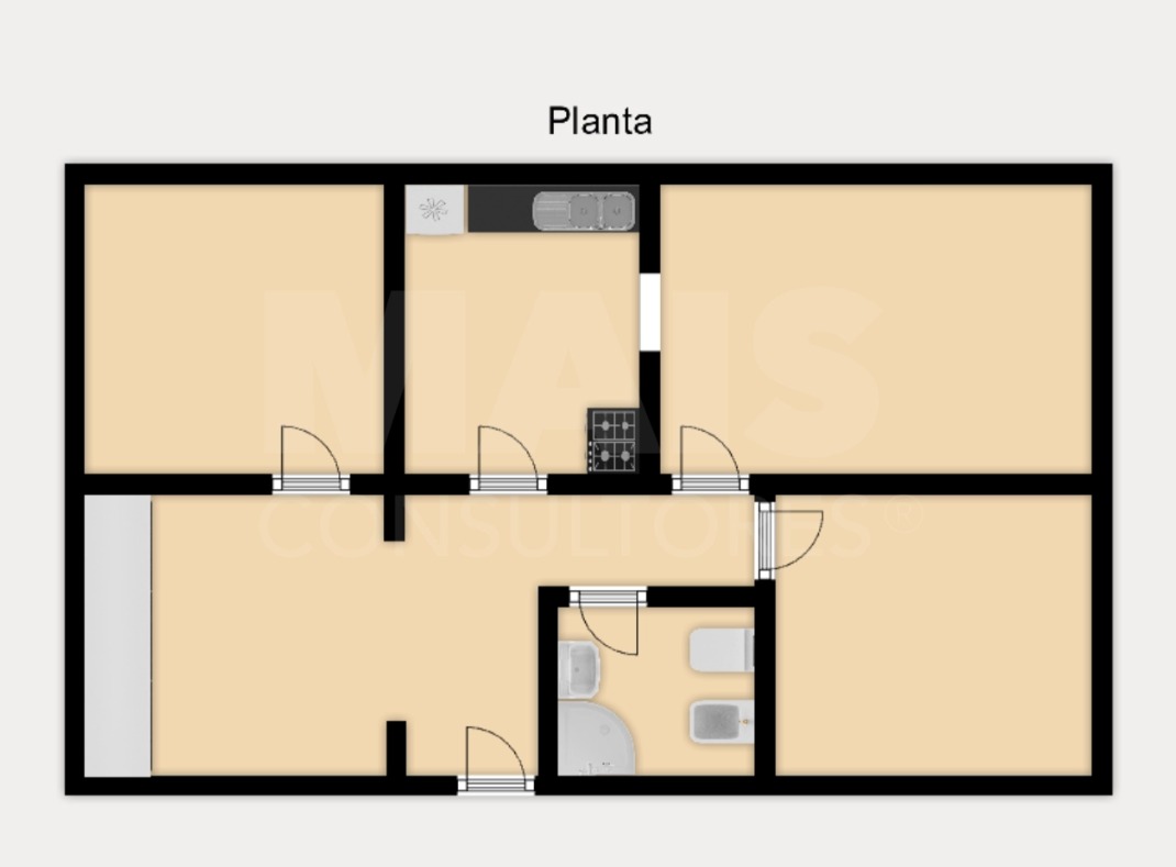 A cozinha está equipada e pronta a acompanhar a tua rotina, enquanto os quartos, com janela, garantem ventilação natural e um ambiente equilibrado.